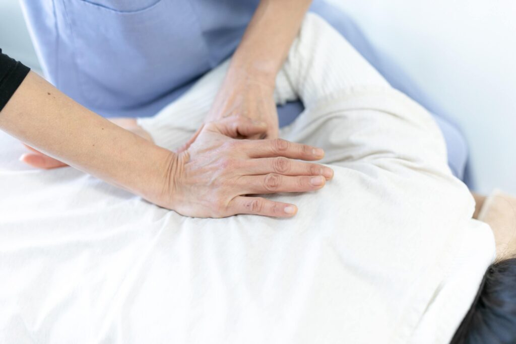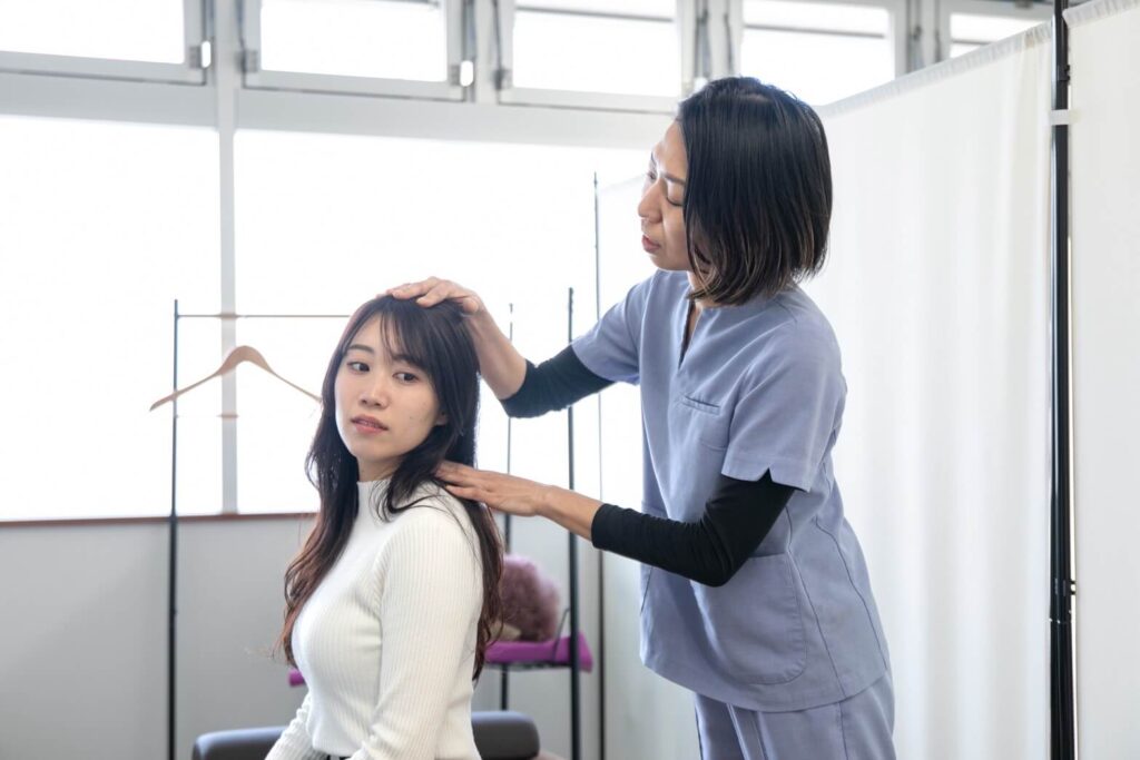 全身の調整と併せて、肩、背中をメインに施術。指の痺れがあったり、呼吸が浅い方、PC作業などが多い方にも。